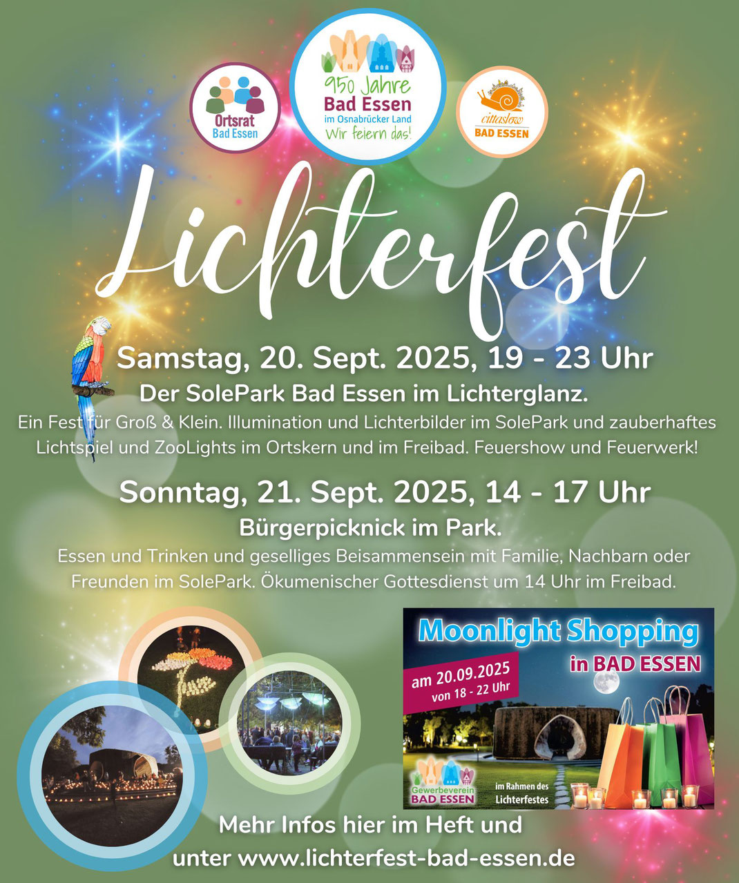 Wir freuen uns auf unsere Begegnungen beim Bad Essener Lichterfest 2025. Lassen Sie uns das Fest im Jubiläumsjahr „950 Jahre Bad Essen“ gemeinsam zu einem ganz besonderen Wochenende machen.
