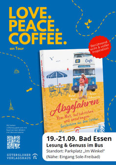 Und noch ein Wort zum Doppellecker-GenussBus: wir möchten Ihnen den Besuch im / am Bus ganz besonders ans Herz legen, denn Michel Malcin und Helene Volkensfeld haben ihr neues Buch „Abgefahren – Vom Mut, aufzubrechen und anzufangen“ im Gepäck. Mit den „Geschichten aus dem Cafébus“ gehen sie bundesweit auf Lesetour und bieten in Bad Essen exklusiv vorab zwei Lesungen im Bus an. Die erste startet schon am Freitag um 20 Uhr und die zweite Chance auf ganz viel authentische Inspiration gibt es am Sonntag um 18 Uhr. Für die Teilnahme ist eine Reservierung erforderlich. Buchen Sie deshalb schnell Ihren Platz auf der Doppellecker-Internetseite: abgefahren.doppellecker.de. Aber auch ohne Lesung gibt es ganz viel Love, Peace and Coffee: Freitag von 15 bis 18 Uhr, Samstag von 10 bis 13 Uhr und von 15 bis 22 Uhr und am Sonntag von 10 bis 13 Uhr und von 15 bis 18 Uhr.